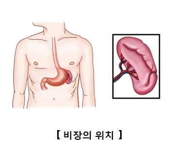 하대정맥에서 비장까지 이어진 주혈관이 있으며, 위의 근위부에 혈액을 공급하는 짧은위동맥 분지가 있고, 위의 아래를 따라 왼쪽으로 좌위대망동맥이 뻗어져 나갑니다.