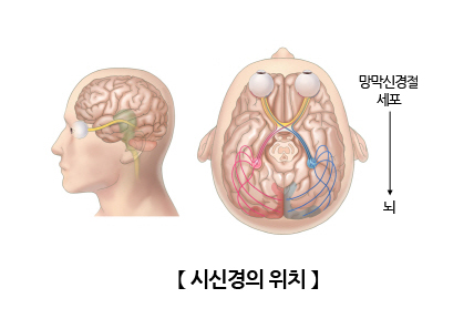 망막신경절 세포에서 안구의 뒷부분을 지나 뇌로 이어져 있습니다.
