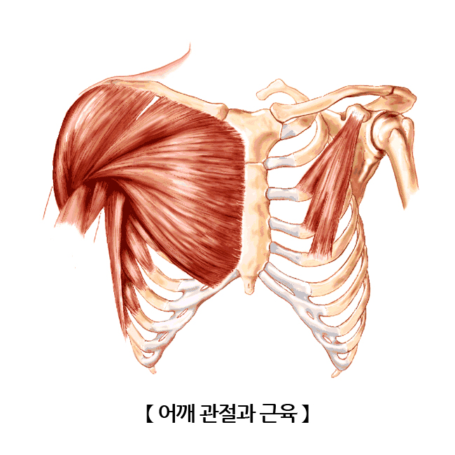 어깨는 상완골, 견갑골, 쇄골의 3개의 뼈로 이루어져 있으며 견갑상완관절, 견쇄관절, 흉쇄관절, 견흉관절, 상완상관절 5가지 관절로 이루어져 어깨의 움직임이 가능하게 합니다.
